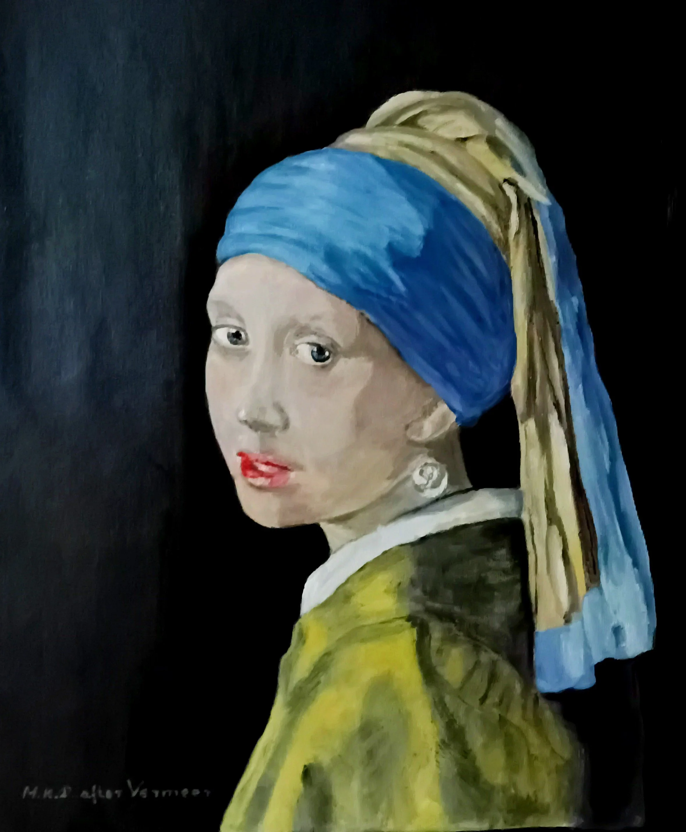 I signed it “M.K.P. – after Vermeer” to acknowledge what it is: a respectful study, a conversation with a master, and a small step in my own artistic journey.